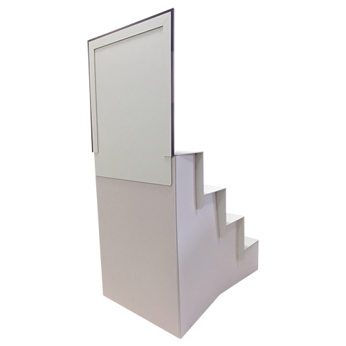 【展示会什器】~ より効果的なPRが可能のパネル付きひな壇 ~