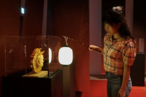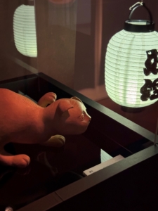 今回は「妖怪」をテーマにした工芸品の展示会で、暗い夜道を模した空間構成となっておりますが、