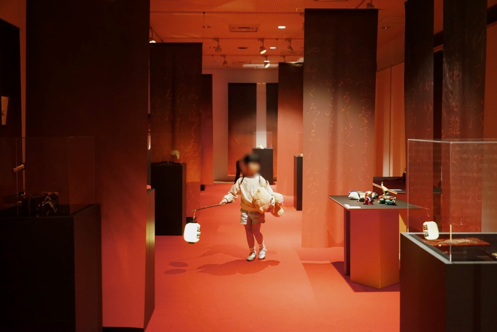 今回は「妖怪」をテーマにした工芸品の展示会で、暗い夜道を模した空間構成となっておりますが、
