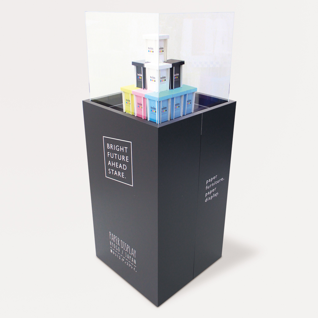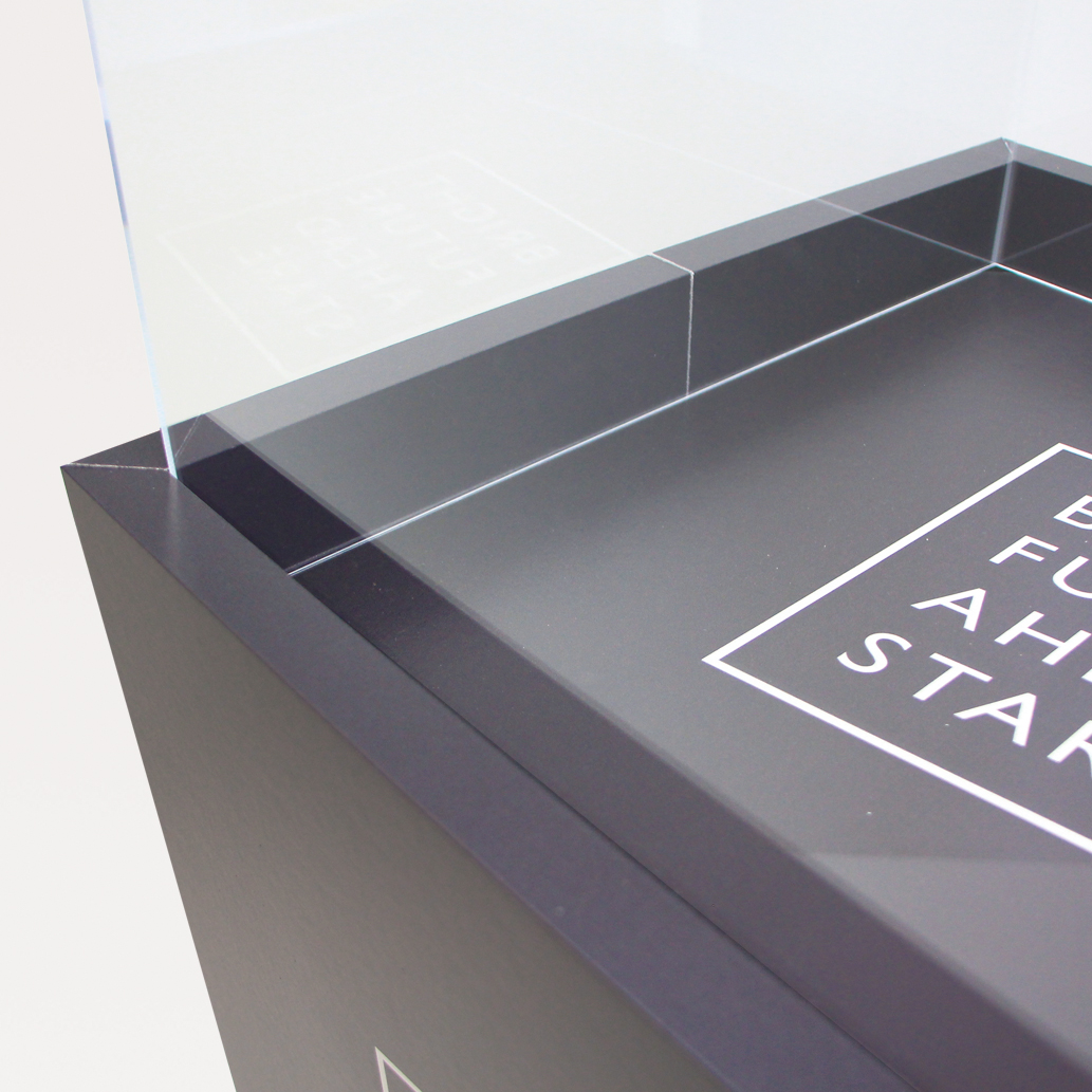 光沢感で主役を魅せる、アクリルショーケース付展示台。