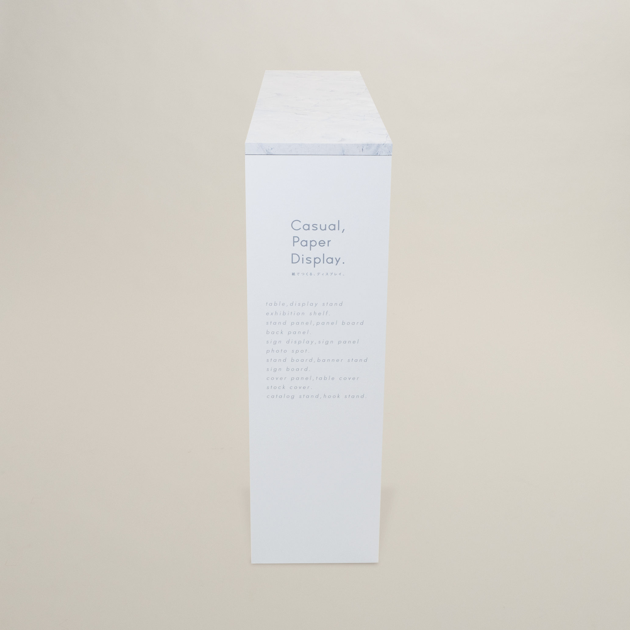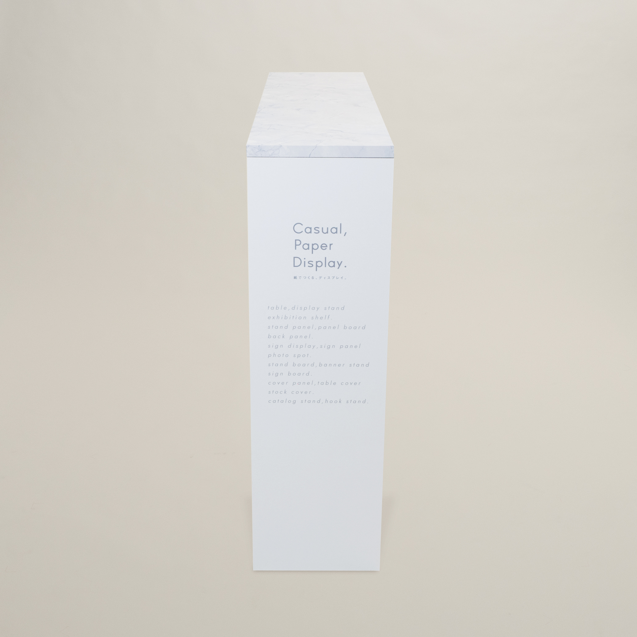 通路などのスペースが限られた空間でも使用できる細身タイプの展示台です。